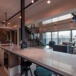 Kitchen and dining room in the residence are all in one large area with no separation, making it more practical and attractive. Brick wall accent is found in several locations of the residence adding additional charm. All furniture and appliances are also picked for a modern minimalist look.