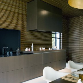 Renovated kitchen with wood wall paneling was assembled by hand. The kitchen has a generous work surface with a black marble countertop. Dining and kitchen in one area provide large space for up to six people.