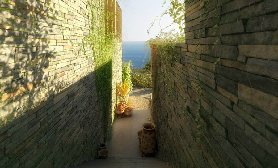 Stone Retaining Walls Narrow Passage Scenic View – Designed By Dbox