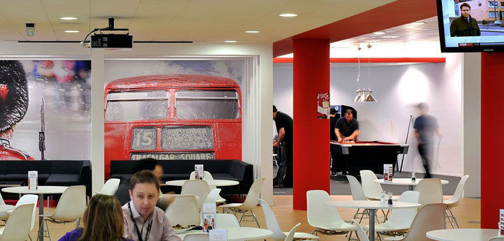 Cafetaria Office Design with Billiards Table – Web Hosting Company Rackspaceās office by Morgan Lovell architects.