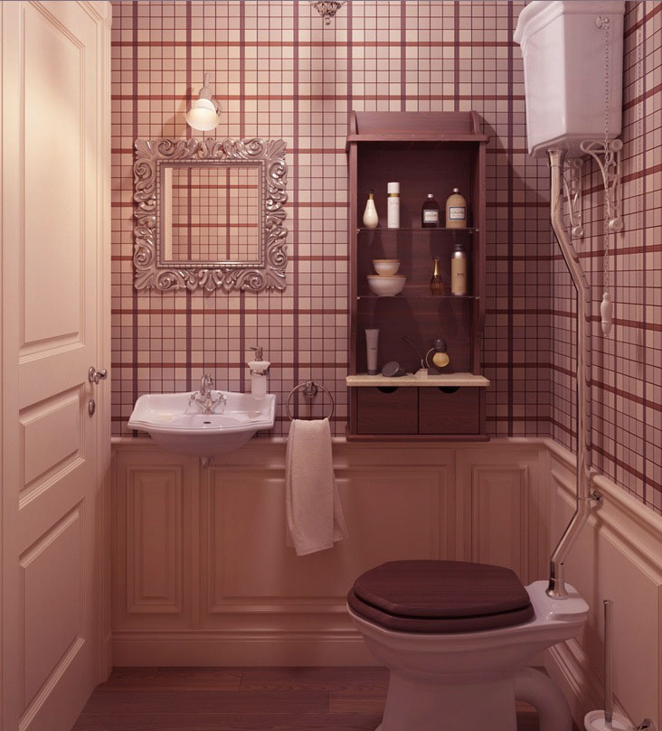 Awesome cloakroom with plaid wallpaper ideas. 3D Cloakroom rendering by Anton Valiev.