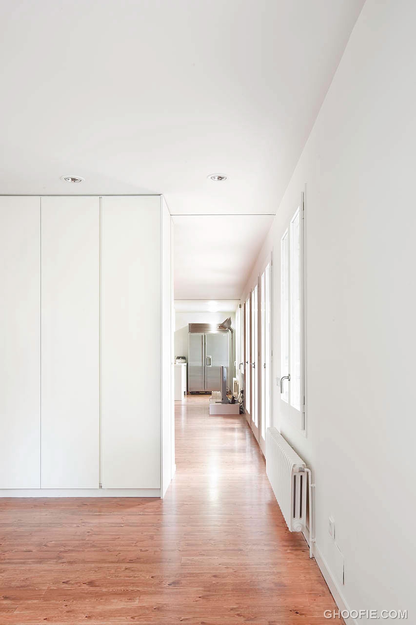 Bonanova apartment was designed by Spanish architect Marià Castelló Martínez. The apartment is located in Barcelona, Catalonia, Spain. Open plan kitchen and living room offers a fantastic and large space. Ceilings and walls feature horizontal white gypsum paneling and wooden floors in smoked oak. We especially liked the use of recessed spotlights. The kitchen is modern and offers good storage and fine working surfaces. Kitchen interior in white with matching durable bright laminate countertops. Elegant hallway white Bonanova apartment designed by Marià Castelló... Read full article »