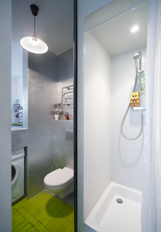 Modern Bathroom Apartmen in Small Space with Green Floor