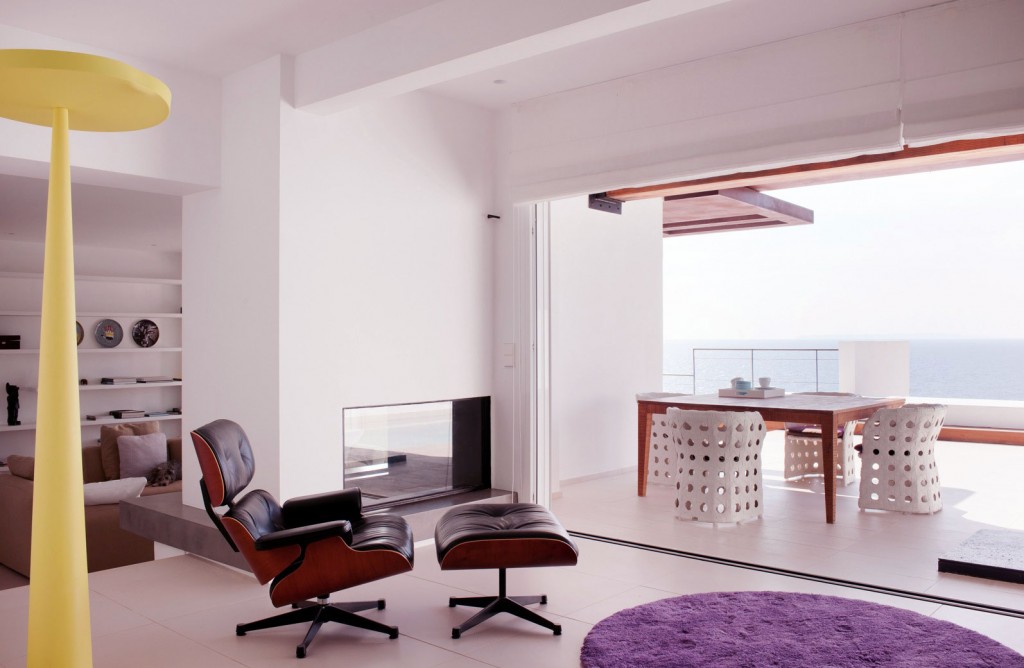 Retractable glass doors living room to patio by Belgian firm JUMA Architects and Minimum Arquitectura.