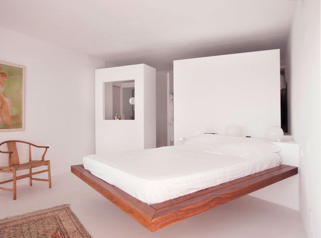 Wooden Platform Bed in White Room Ideas by Belgian firm JUMA Architects and Minimum Arquitectura.