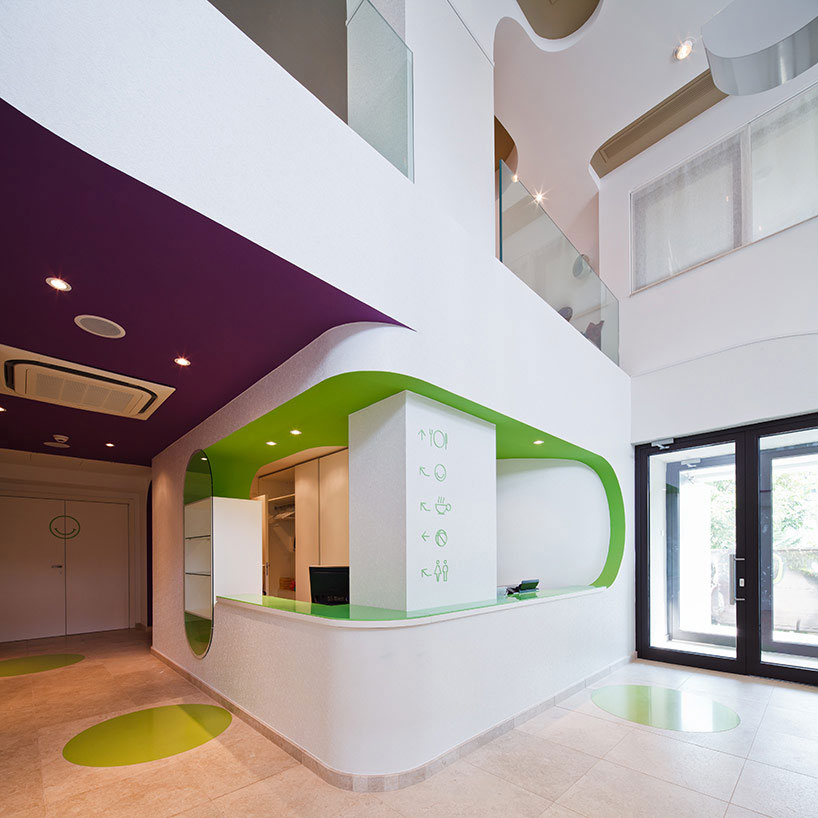 Nuca Studio has designed a hangout for the entire family. This Cafe is located in Romania and draws inspiration from vinyl toys and Japanese anime and cartoons. The cafe is equipped with a restaurant and playground. It even has an elephant in the room. Fancy Reception Area with Green and White Color - Cool corporate reception area by Nuca Studio Read full article »