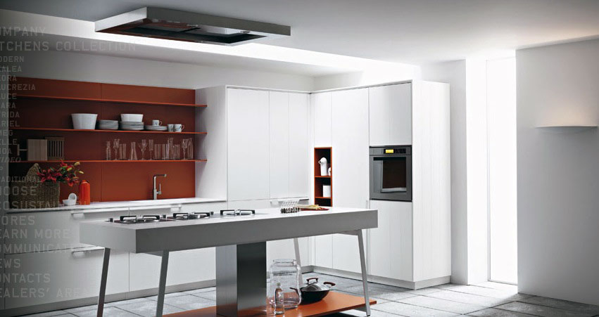 CesarĀ is a famous Italian kitchen designer since 1969, and his designs are known around the world. Some of the designs use the original wood color to create homely kitchen but still calm, elegant and modern. Clean counters and glossy walls without knick-knacks is characteristic of modern kitchens. Burnt orange modern kitchen backsplash. Designed by Cesar Italian kitchen companies. Read full article »