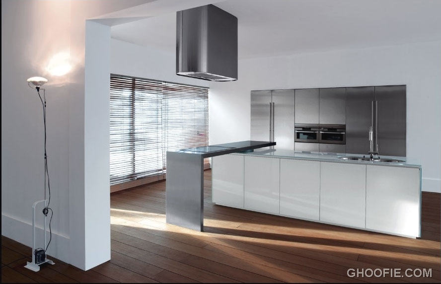 Classy kitchen with natural light ideas. Modern kitchen with white kitchen cabinet and aluminum hood design.