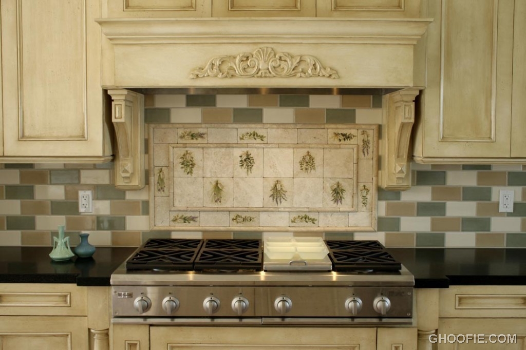 Pretty Tile Kitchen Backsplash with Artistic Painting