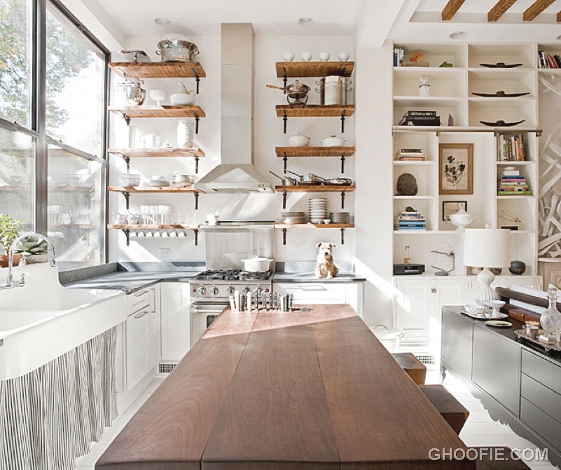 Modern open kitchen shelving ideas. This wonderful kitchen is made yellow pine. A open kitchen design that totally looks charming!