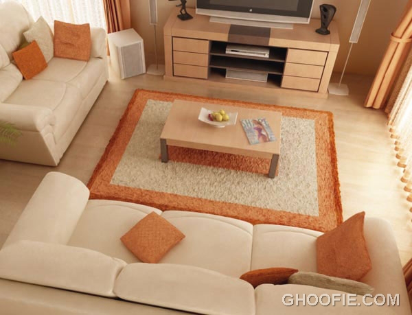 Orange color accent makes this living room totally stunning giving the room a very fresh appearance.