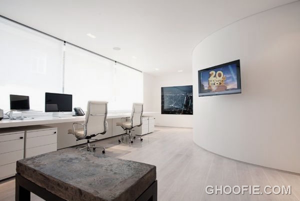 Modern white office design with Herman Miller chair. The curves in the design of office space is very attractive and chic. With the white color looks more clean and modern.