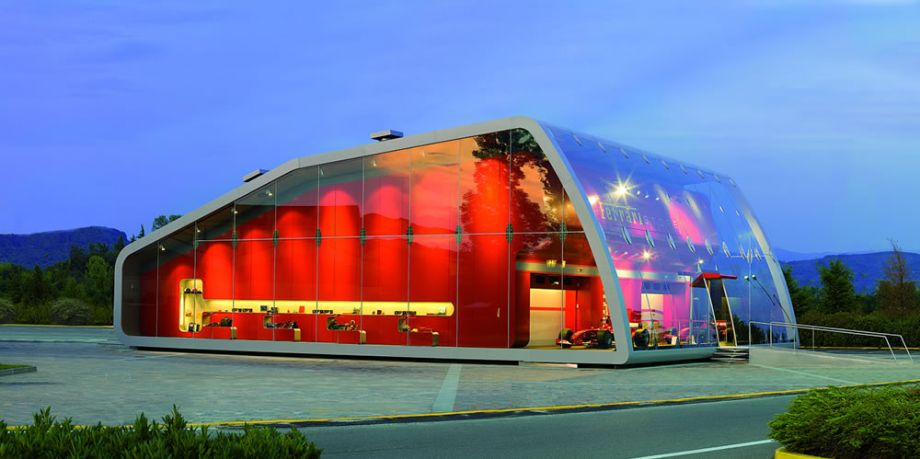 Iosa Ghini Associates developed and designed this Ferrari Factory Store in Serravalle Scrivia. For the first time in history a Ferrari Store is built from scratch in a home building store. The facility enjoys a privileged position as it became one of the first buildings visible from the outside and the main parking lot and nearby roads. Charact...